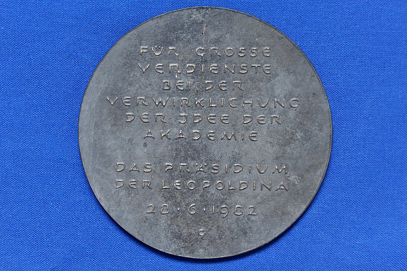 Diese verleiht das Präsidium aus besonderem Anlass „für überragende Verdienste um die Idee und das Wohl der Akademie“. Sie trägt das Porträt und den Namen des Ausgezeichneten. Die Auszeichnung erfolgt seit 1961 in unregelmäßigen Abständen – innerhalb von 50 Jahren 24 Mal. Unter anderem wurden 1982 der Physiker Carl Friedrich von Weizsäcker und 2009 der Biochemiker Ernst-Ludwig Winnacker mit der Verdienst-Medaille gewürdigt.